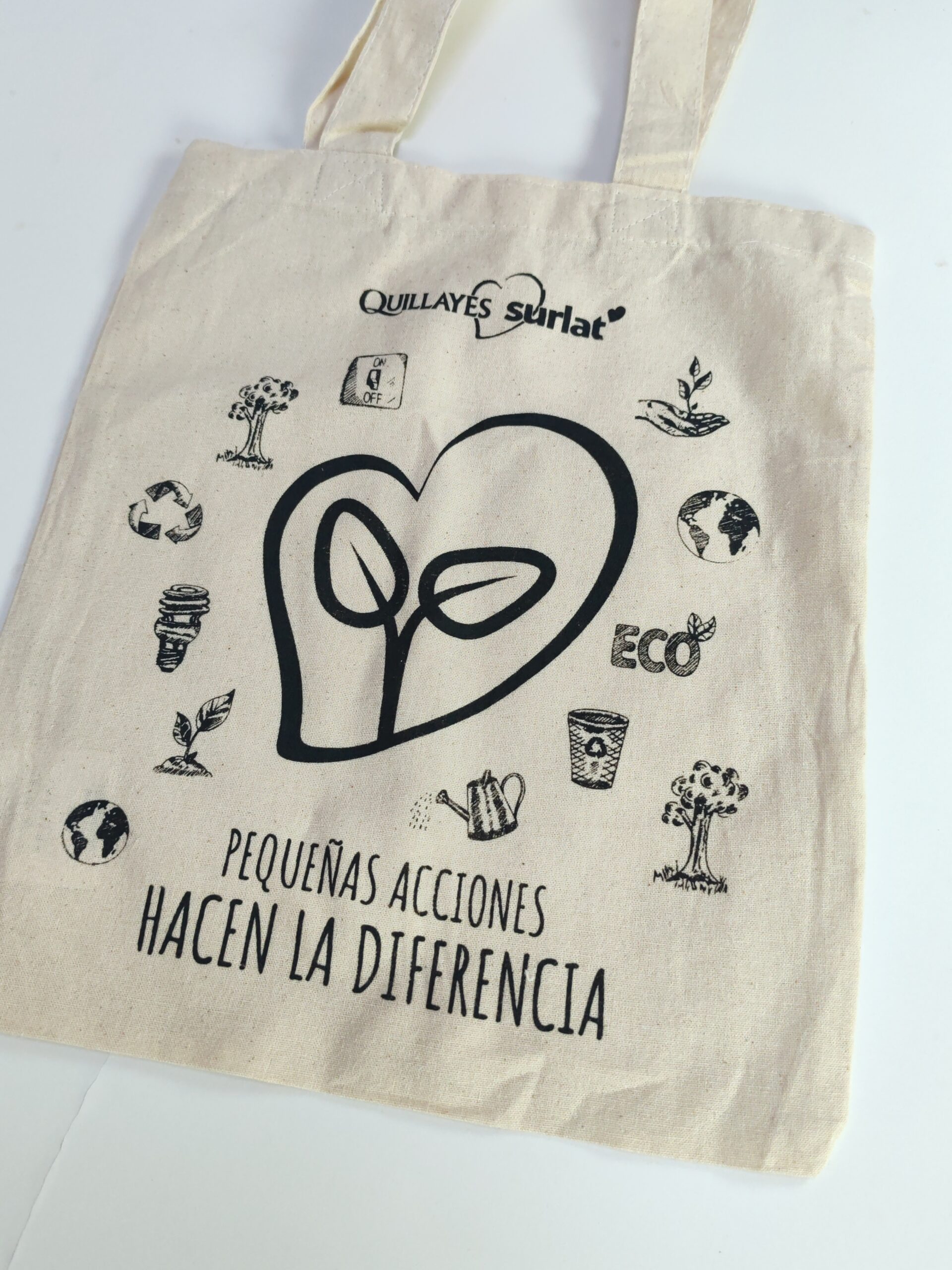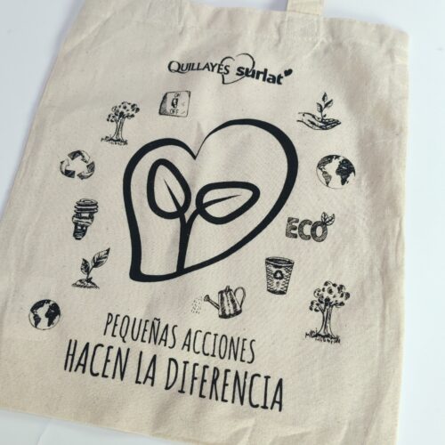 - Bolsa de algodón orgánico con manillas planas color crudo. Lavable, reutilizable y 100% biodegradable.